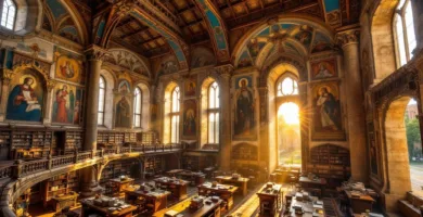 Cette bibliothèque garde des plafonds peints de 1350 dans un palais fortifié